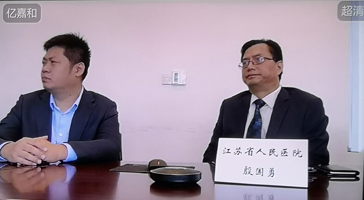 ↑ 第二位:遠(yuǎn)程會診室內(nèi)的江蘇省人民醫(yī)院骨科主任殷國勇教授